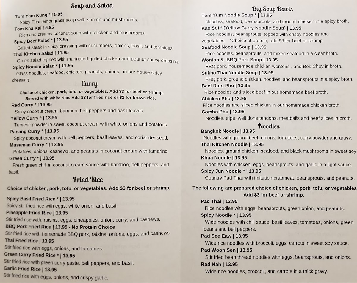 As you enter Thai Kitchen, you are welcomed by a warm ambiance and friendly staff who are eager to make your dining experience unforgettable. The inviting decor, infused with touches of Thai culture, creates a relaxing backdrop for enjoying a comforting meal with friends and family.