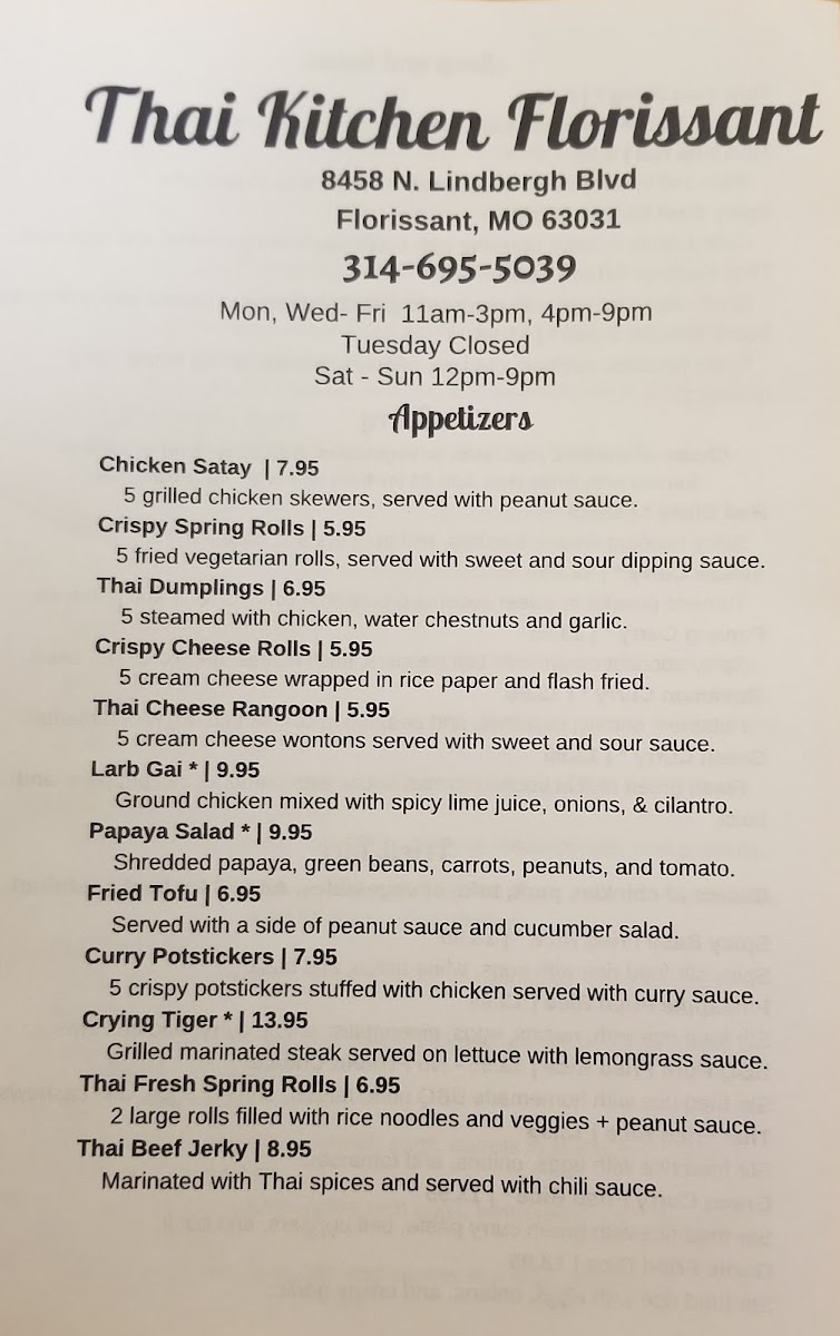 Located at 8458 N Lindbergh Blvd in Florissant, MO, Thai Kitchen is a culinary gem that promises to take your taste buds on an exotic journey through authentic Thai cuisine. This cozy restaurant has won the hearts of many locals, thanks to its delightful blend of flavors, generous portions, and impeccable service.